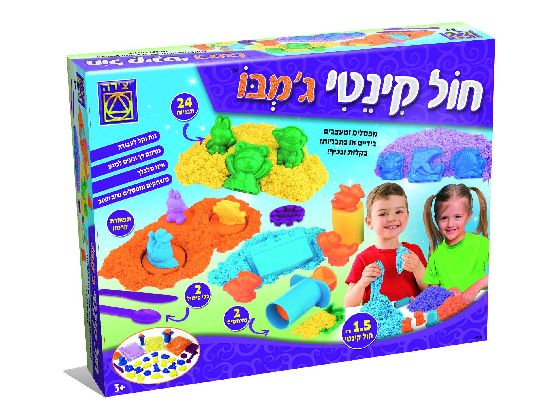 חול קינטי ג'מבו מפסלים ומעצבים בידיים ובתבניות בקלות ובכיף. אינו מלכלך מרקם נח ונעים. 1.5 קג כלי פיסול ומדחסים.