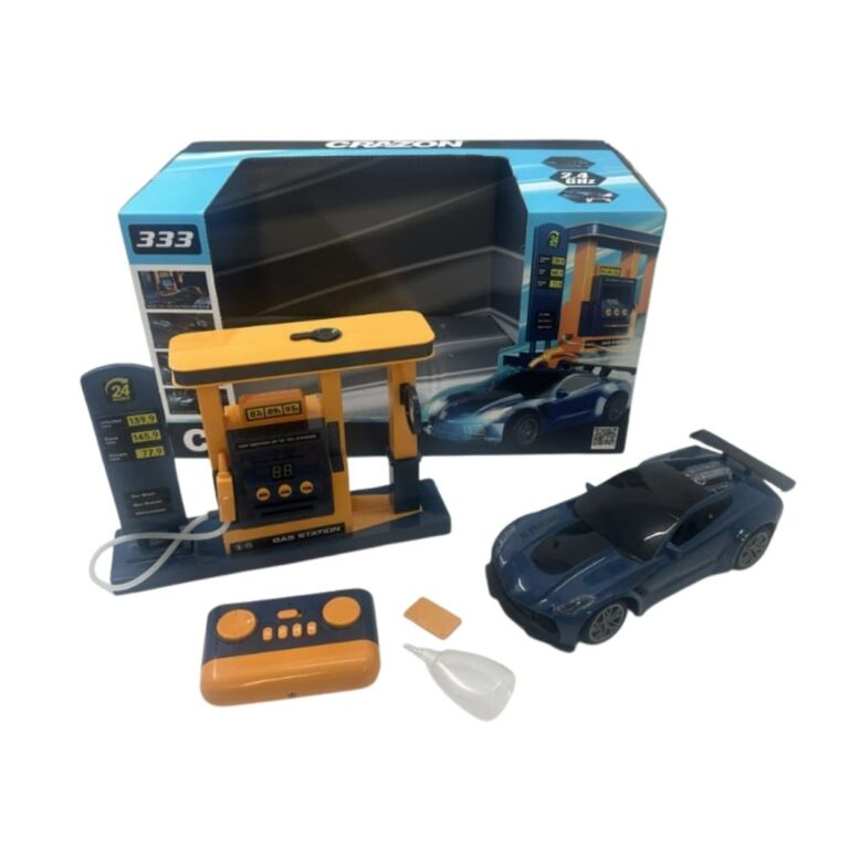 מכונית שלט מתוחכמת אקשן דרייב עם תחנת דלק, מכונית שלט חדשנית עם תחנת דלק בה ממלאים דלק על מים מתדלקים עם כרטיס אשראי וסילון עשן יוצא בשעת הנסיעה. חניה אוטומטית בלחיצת כפתור סוללה נטענת, פנסי איתות ואורות משמיע קולות מנוע למכונית סוללה נטענת.