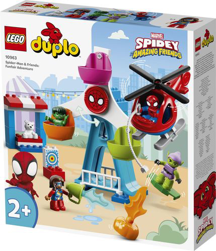 המעריצים הקטנים של "ספיידי והחברים המדהימים" מתכנית הטלוויזיה של מארוול, יזהו את ספיידי, האלק, מיס מארוול והגרין גובלין בערכת אקשן ביריד עם גלגל ענק מסתובב, פצצות דלעת לשיגור, רובה מים ומסוק.